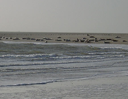 Die Robben haben es sich auf einer Sandbank gemütlich gemacht.