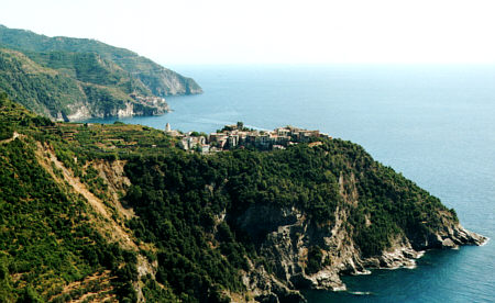 Corniglia liegt auf einer Felsnase rund 100 Meter über dem Meer.
