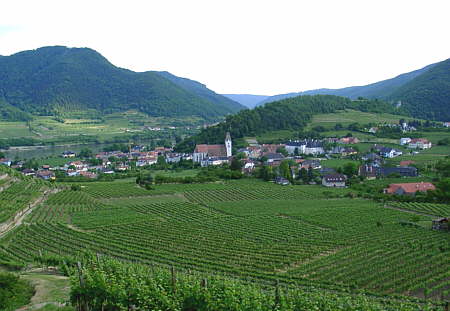 Blick auf Spitz an der Donau - Marillen- und Weinhochburg.